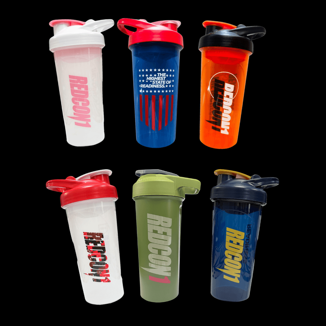 Shaker de la marca redcon1, ideal para llevar agua o preparar batidos.
